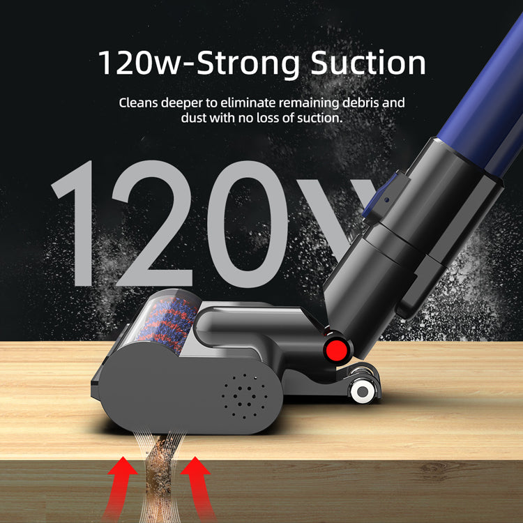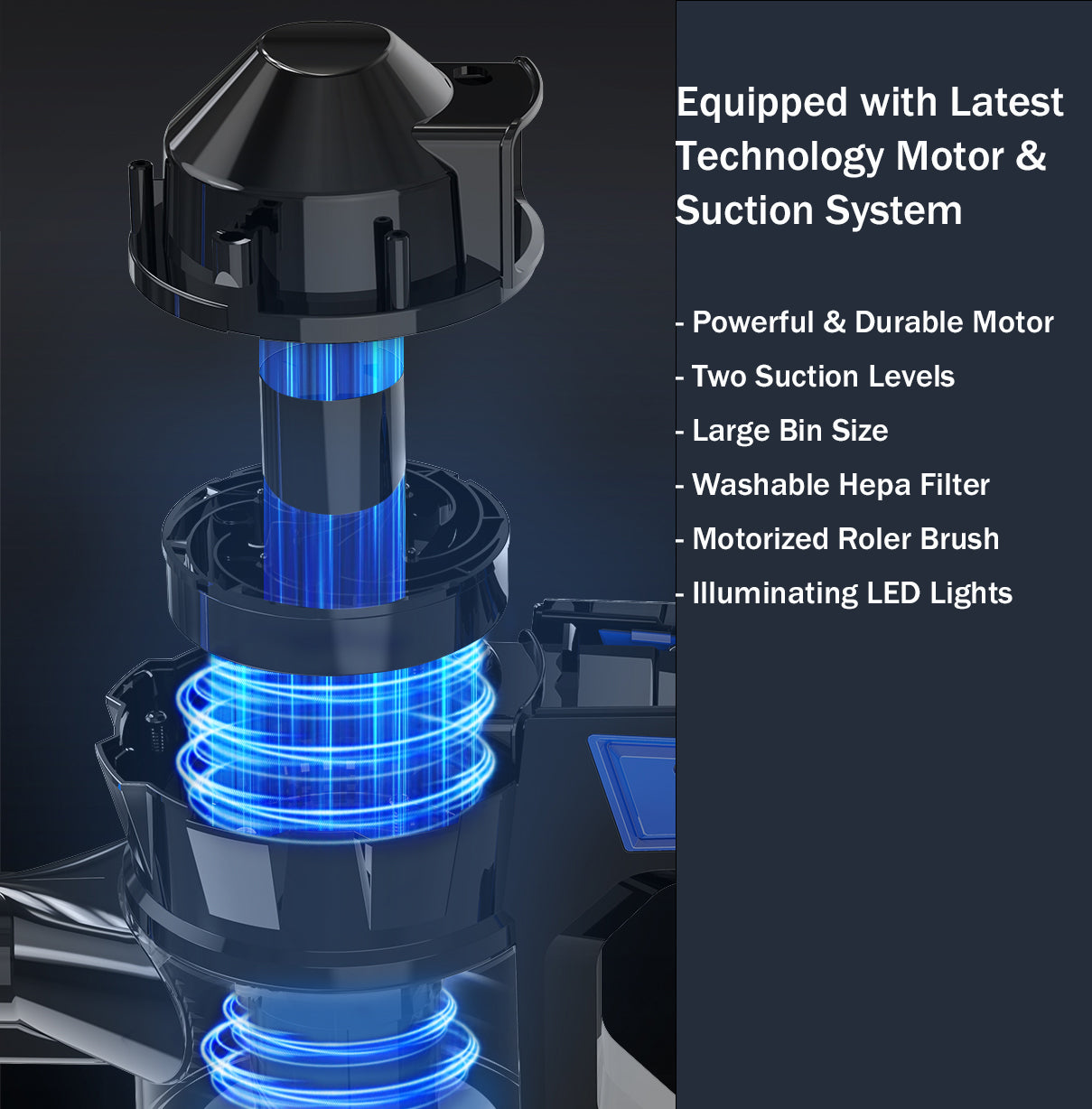 - Motorized Roller Brush & LED Light: The roller brush is motorized maximizing the cleaning performance of this stick vacuum. Three LED lights have been placed on the roller head illuminating the path and highlighting any size dirt and debris to achieve a complete clean.