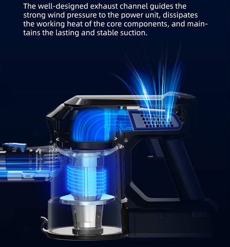 - Power: This cordless vacuum cleaner provides a maximum of 12000Pa of suction pressure which is perfectly sufficient for your day to day cleaning at your home or office on any types of surface from hard floor to carpet