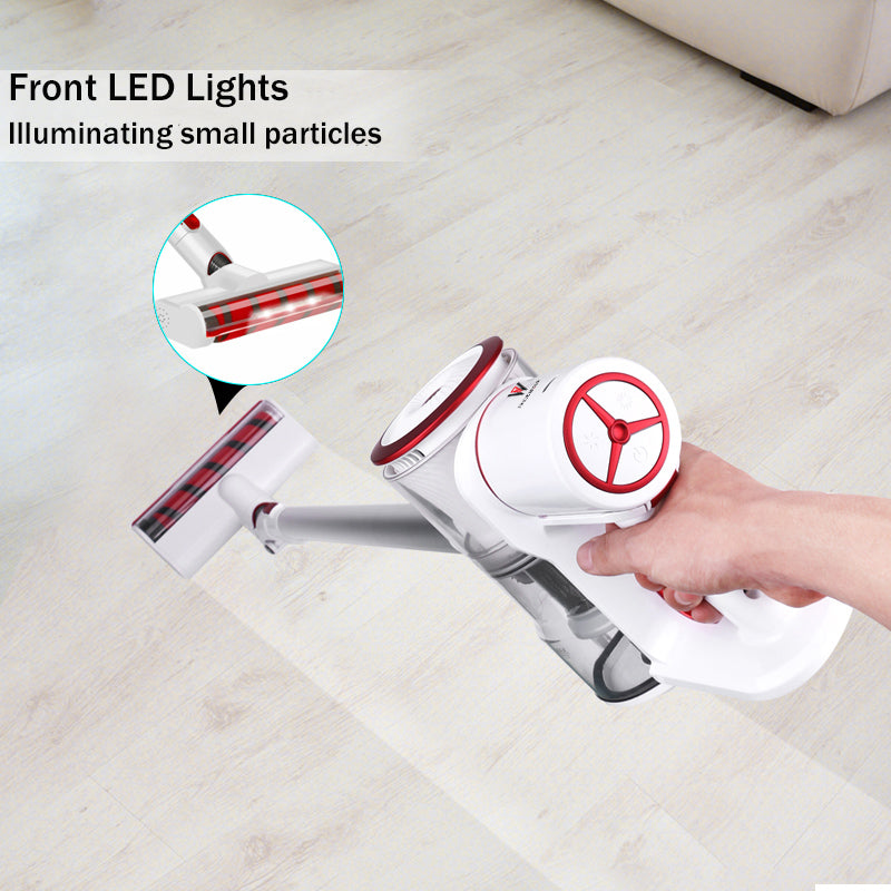- Motorized Roller Brush & LED Light: The roller brush is motorized maximizing the cleaning performance of this stick vacuum. Three LED lights have been placed on the roller head illuminating the path and highlighting any size dirt and debris to achieve a complete clean.