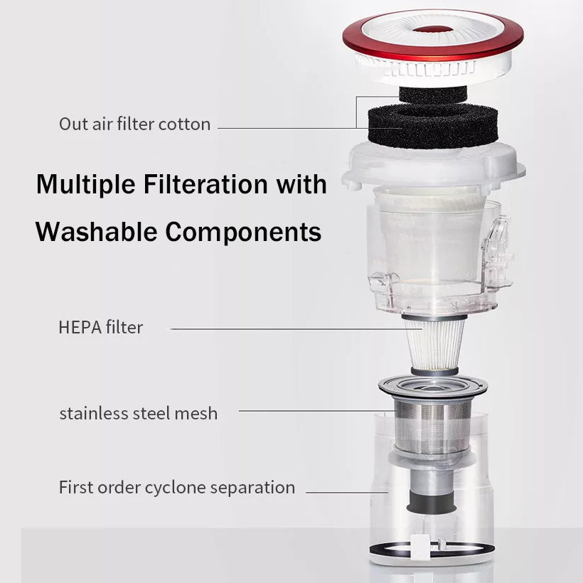 - Washable Filter: Within its filtration system, a washable and reusable Hepa filter has been placed in the cordless vacuum to ensure maximum performance. Also additional filters can be purchased if required.