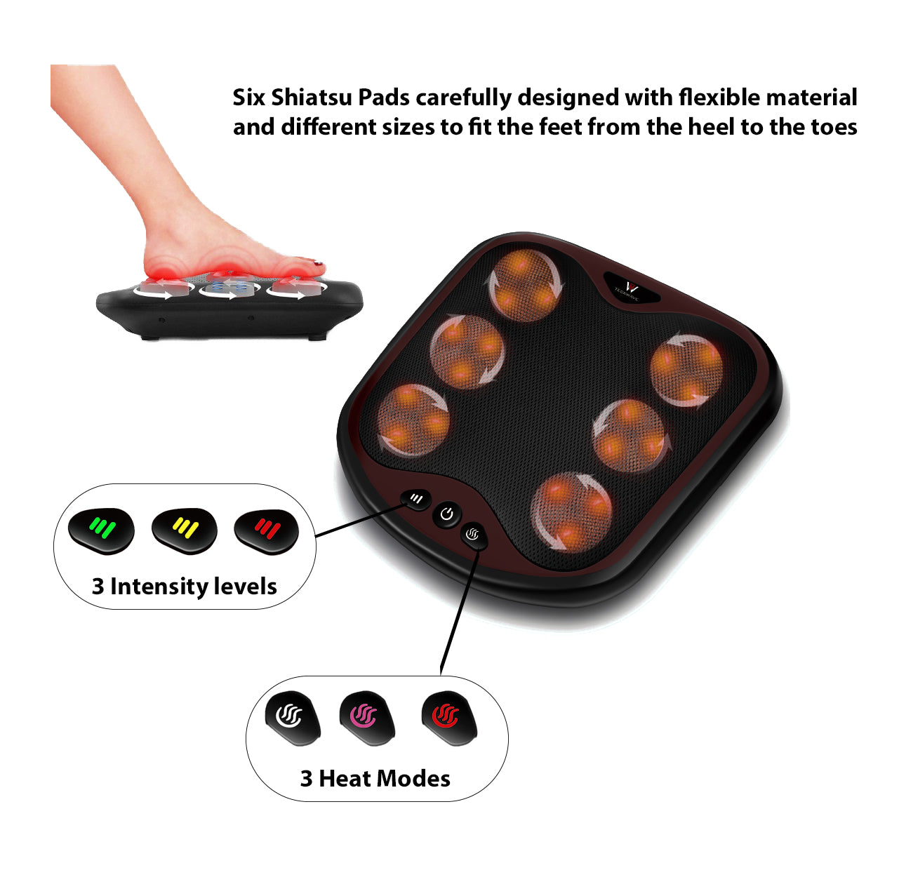 - Effective & Newest Foot Massage Design: This foot massager is designed with 6 rolling pads each having 3 Shiatsu massage nodes designed with different sizes to create a tight fit from the heel to the toes. The massage nodes are built with special material to create a natural feeling while massaging the feet
